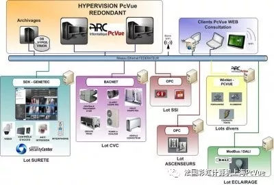 为了成功实施该项目,需要将130,000个节点集中到由多个子系统组成的系统中,用于管理大电流应用(能源计量)、传感器、电梯、照明控制器、水管设施、安全和消防设施。这种超级监控系统的核心是ARC Informatique(法国彩虹计算机公司)的PcVue平台监控系统,由4个冗余服务器、4个客户端工作站和25个WebVue许可组成,可提供远程网络访问。它可以控制供水、管道和大电流设备。